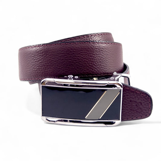 Cinturón automático en cuero vino tinto – Hebilla elegante