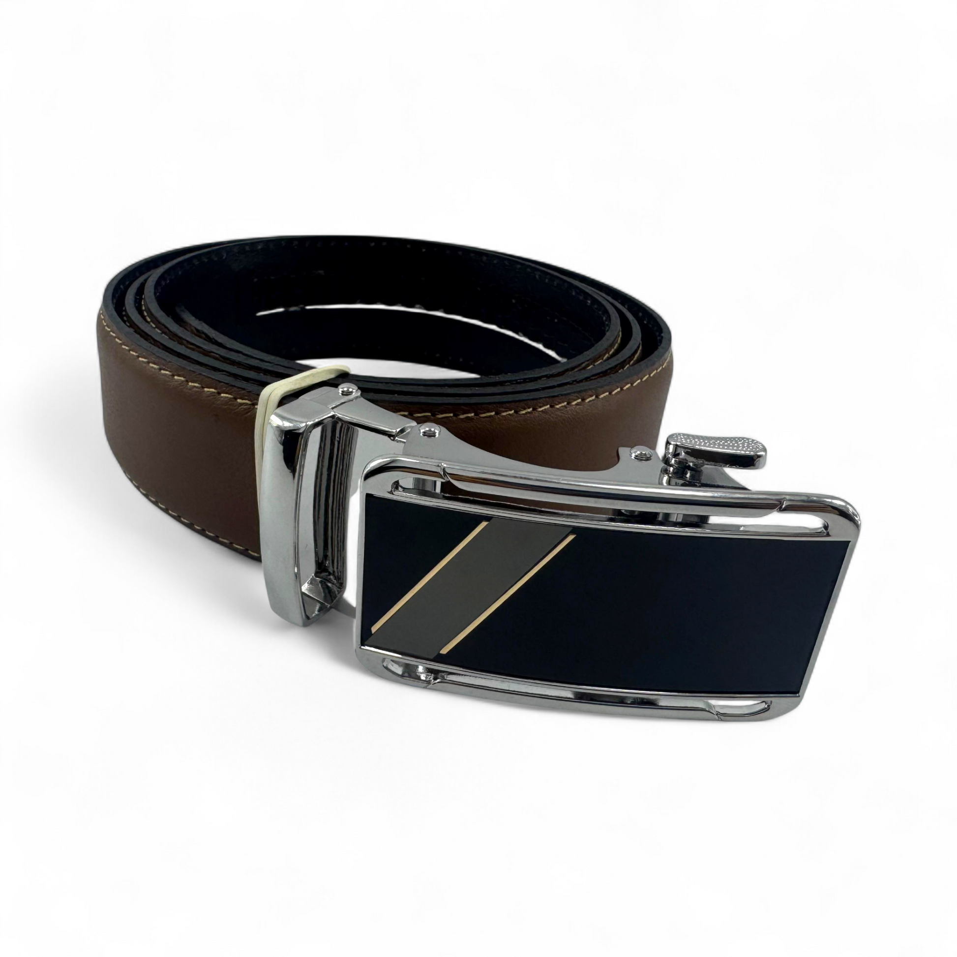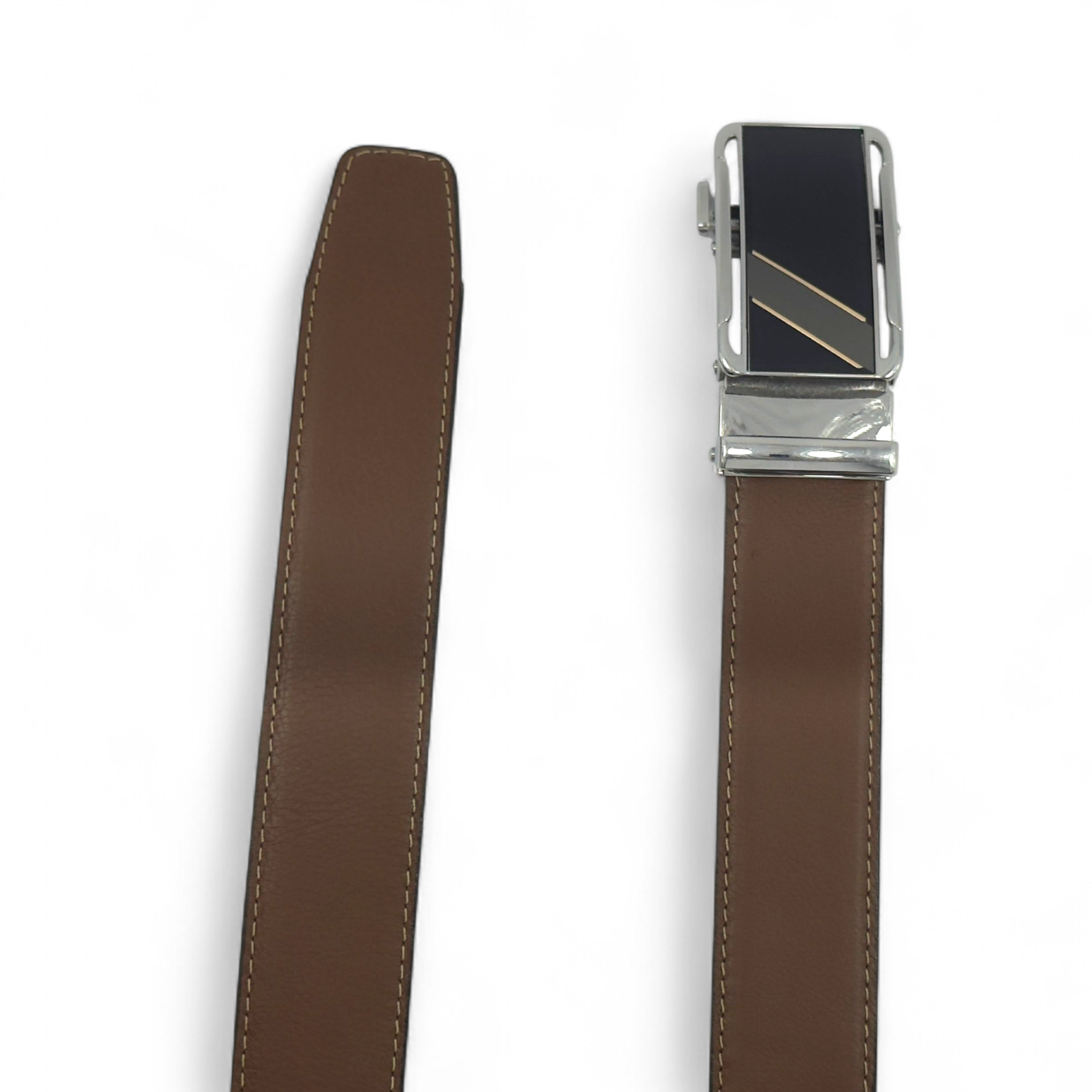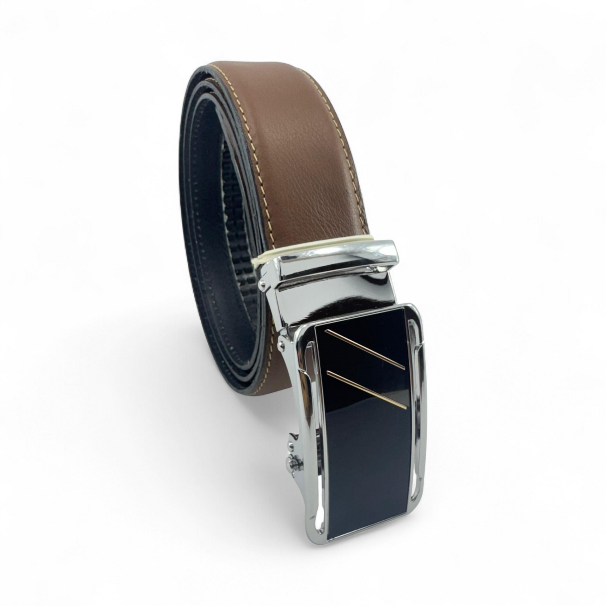 Un accesorio moderno y funcional que combina elegancia con practicidad. Elaborado en cuero genuino de alta calidad, cuenta con una hebilla automática en acabado metálico brillante con diseño geométrico sobrio en negro, que permite un ajuste preciso y sin necesidad de perforaciones.