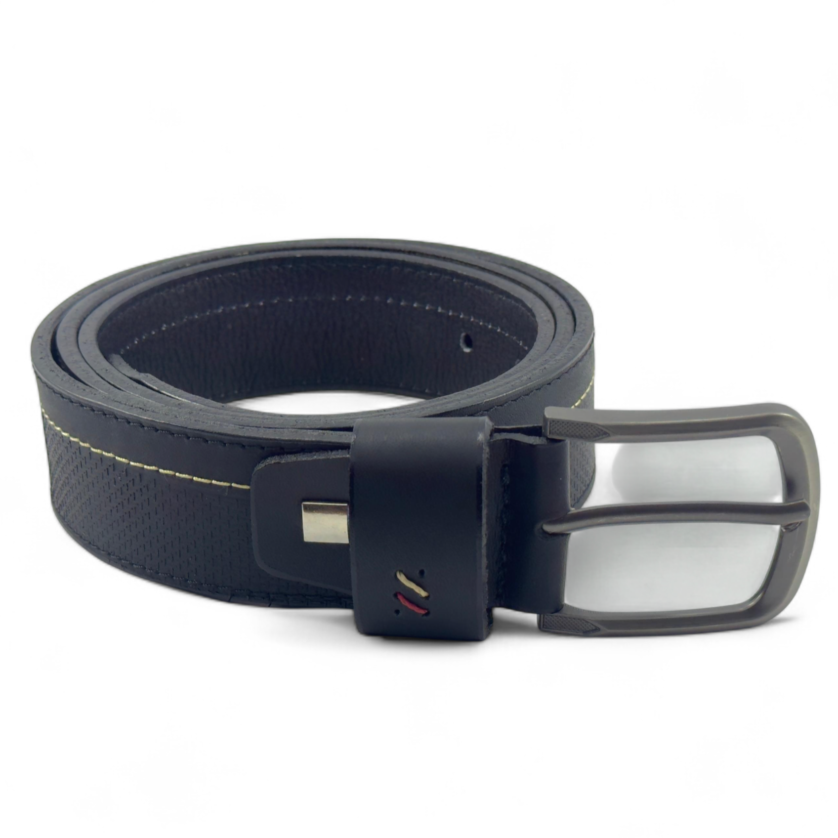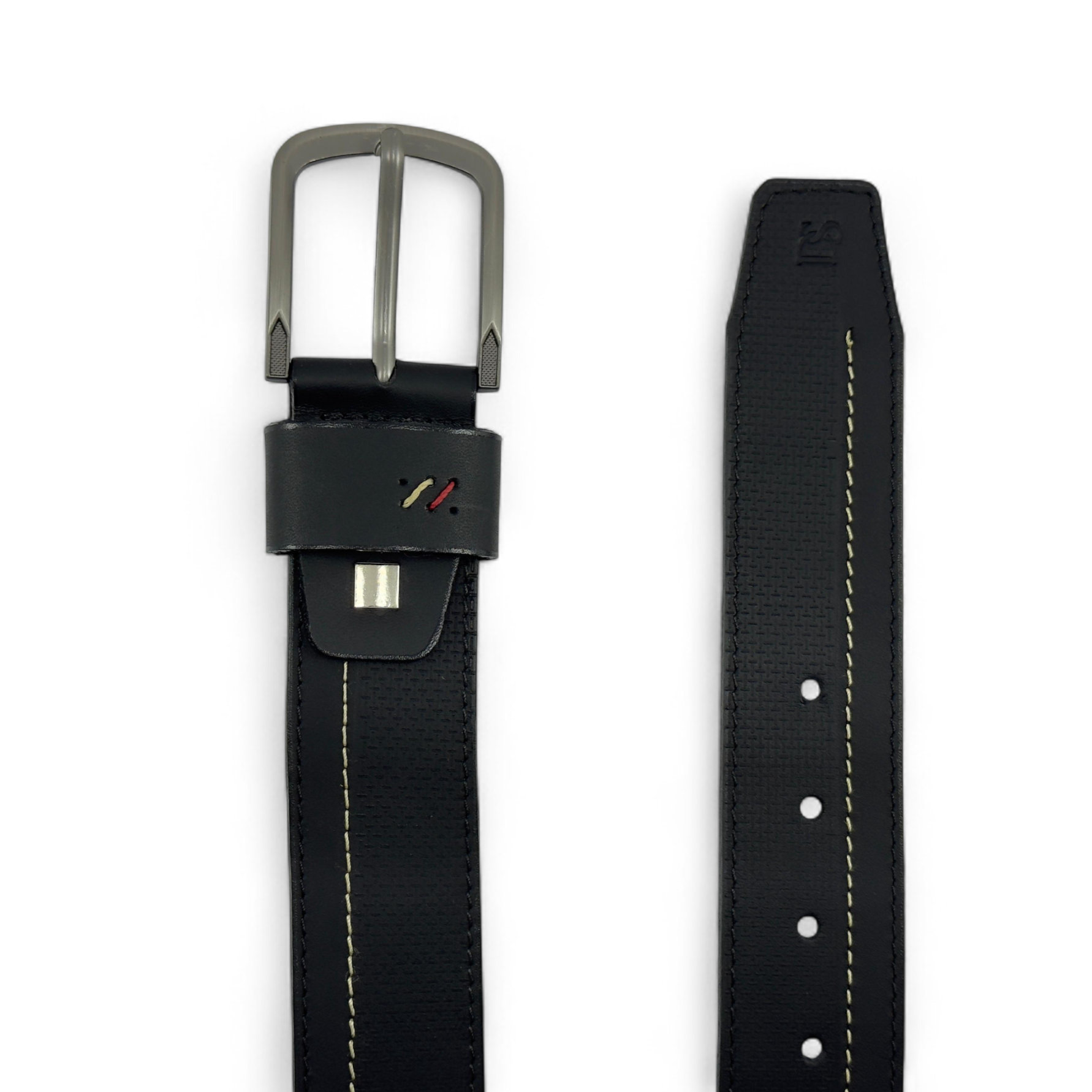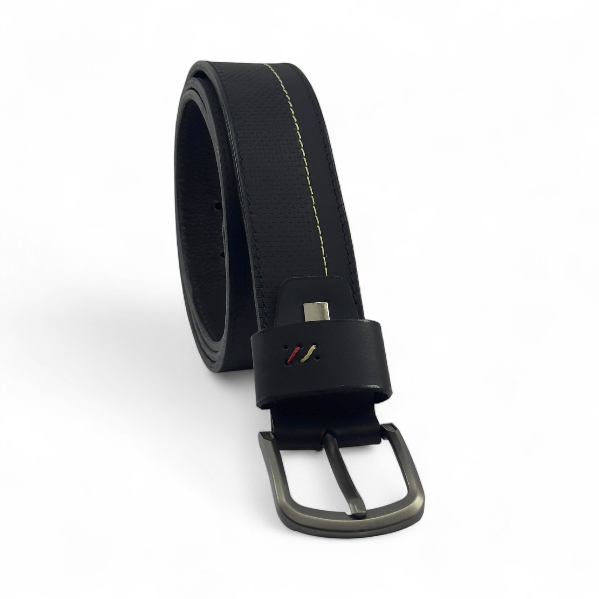 Un cinturón que refleja distinción y fuerza gracias a su acabado texturizado en cuero genuino. Sus costuras contrastantes y detalles bordados le aportan un estilo moderno y exclusivo, ideal para quienes cuidan cada detalle de su look.