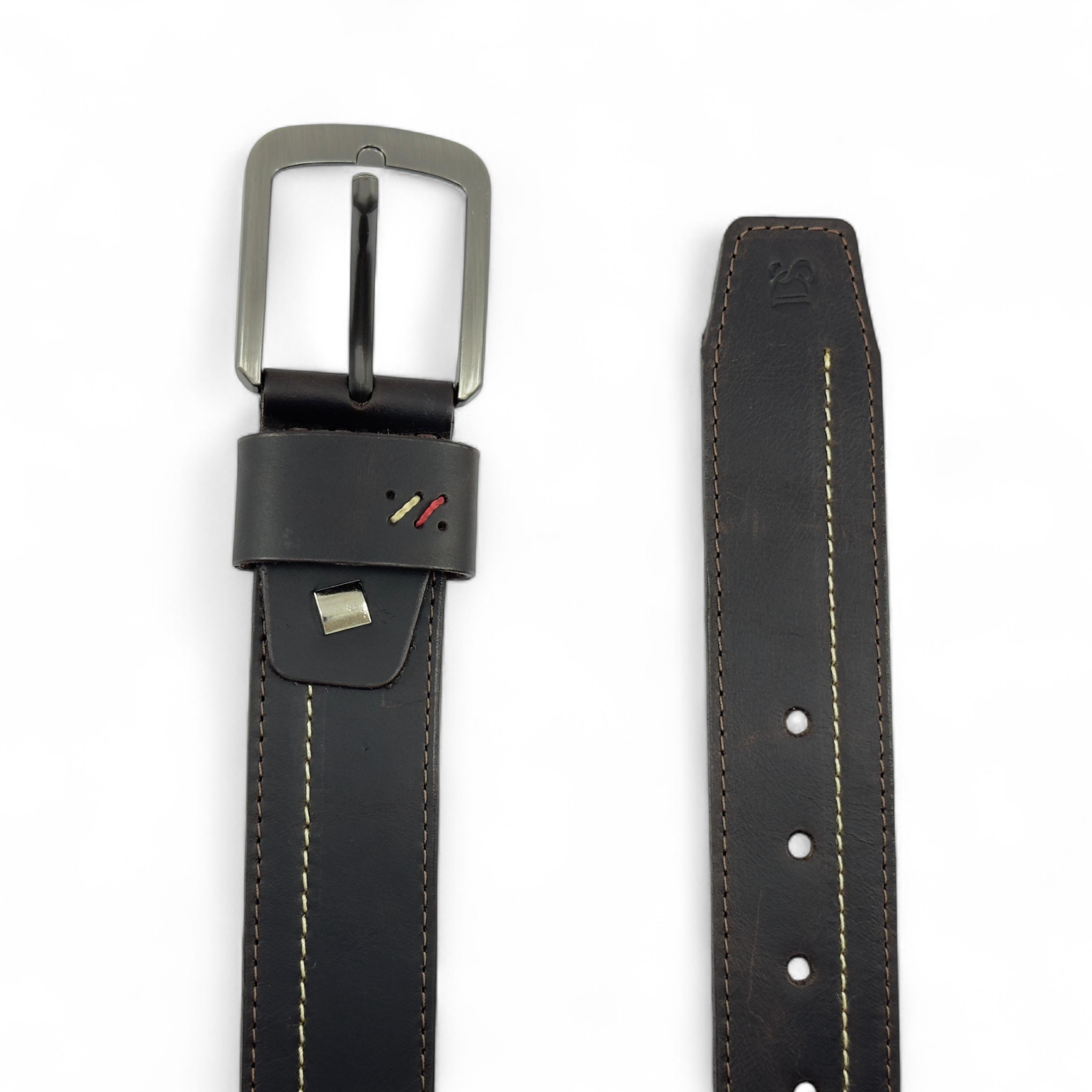 Cinturón Café Oscuro en Cuero Genuino con Detalle Exclusivo
