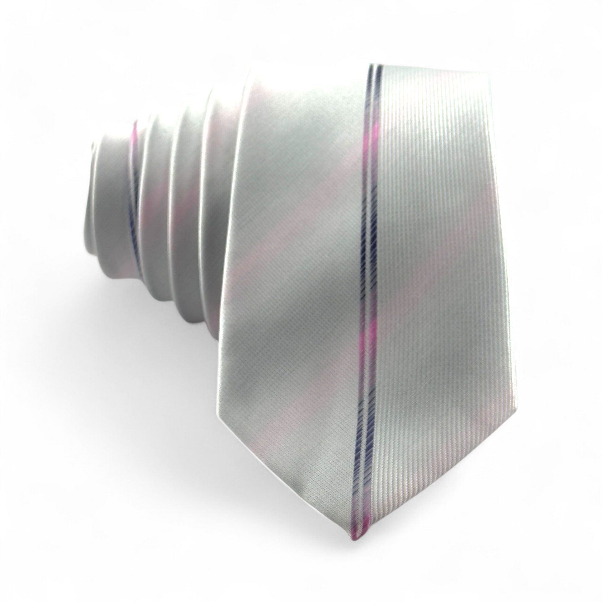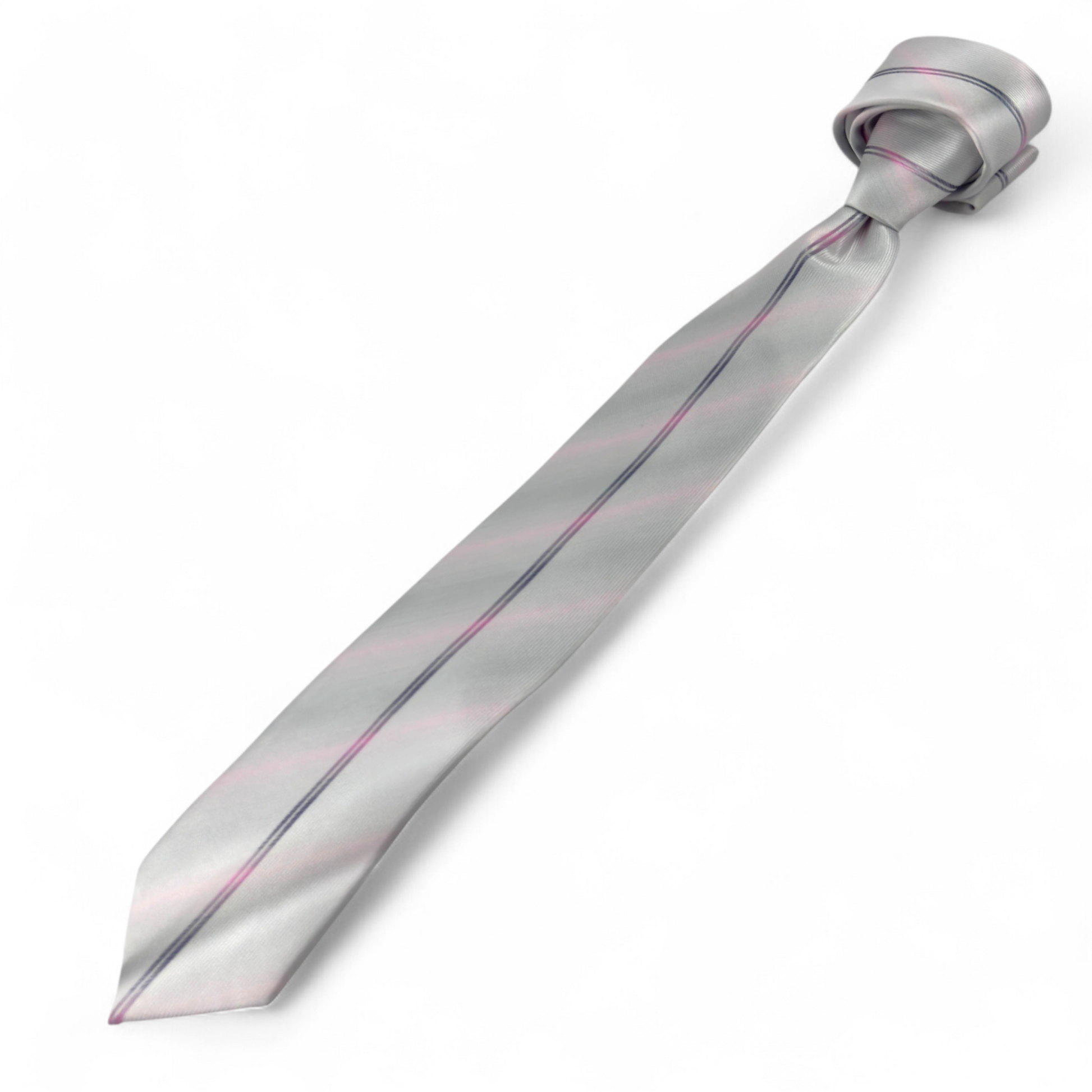 Corbata blanca con efecto gris y líneas sutiles rosadas