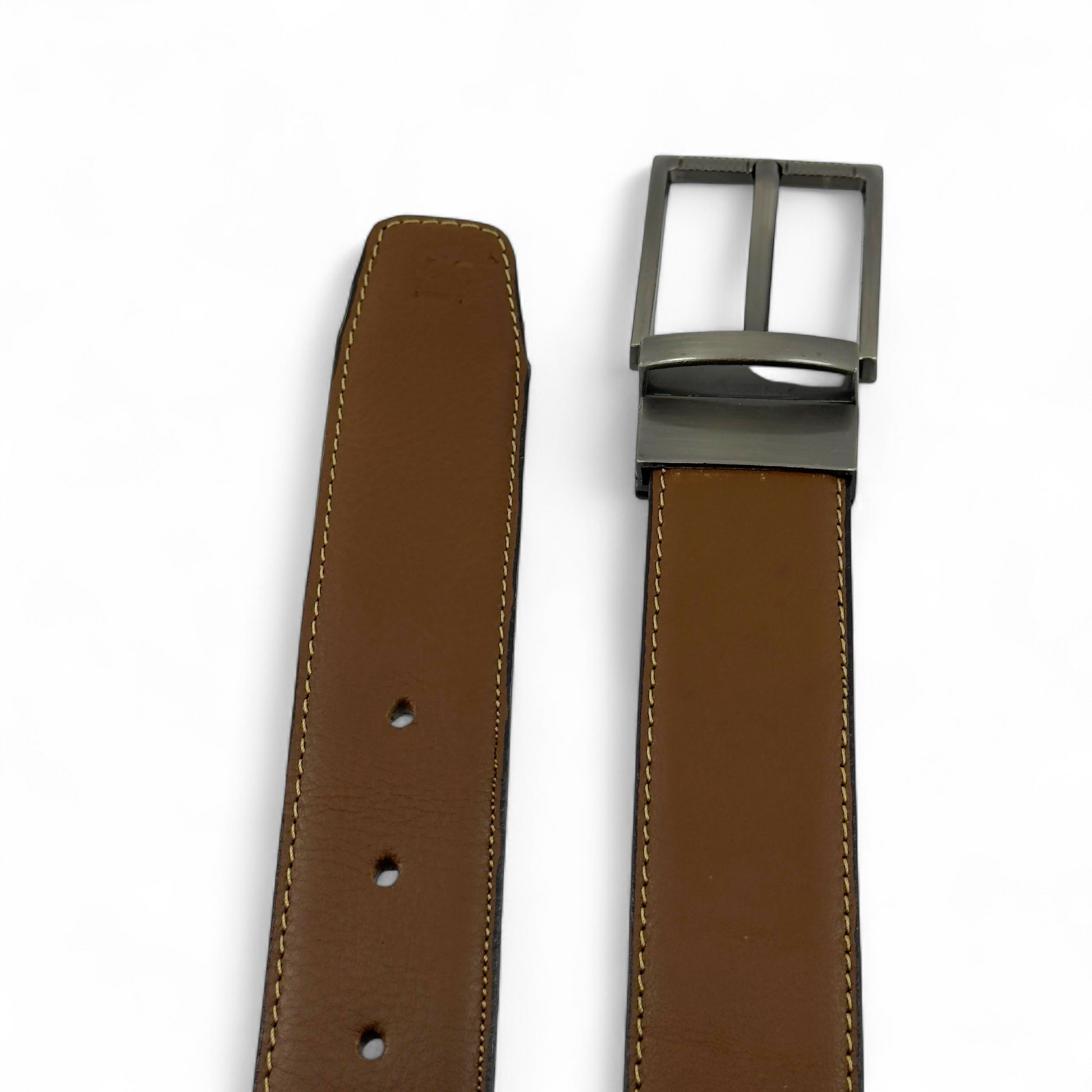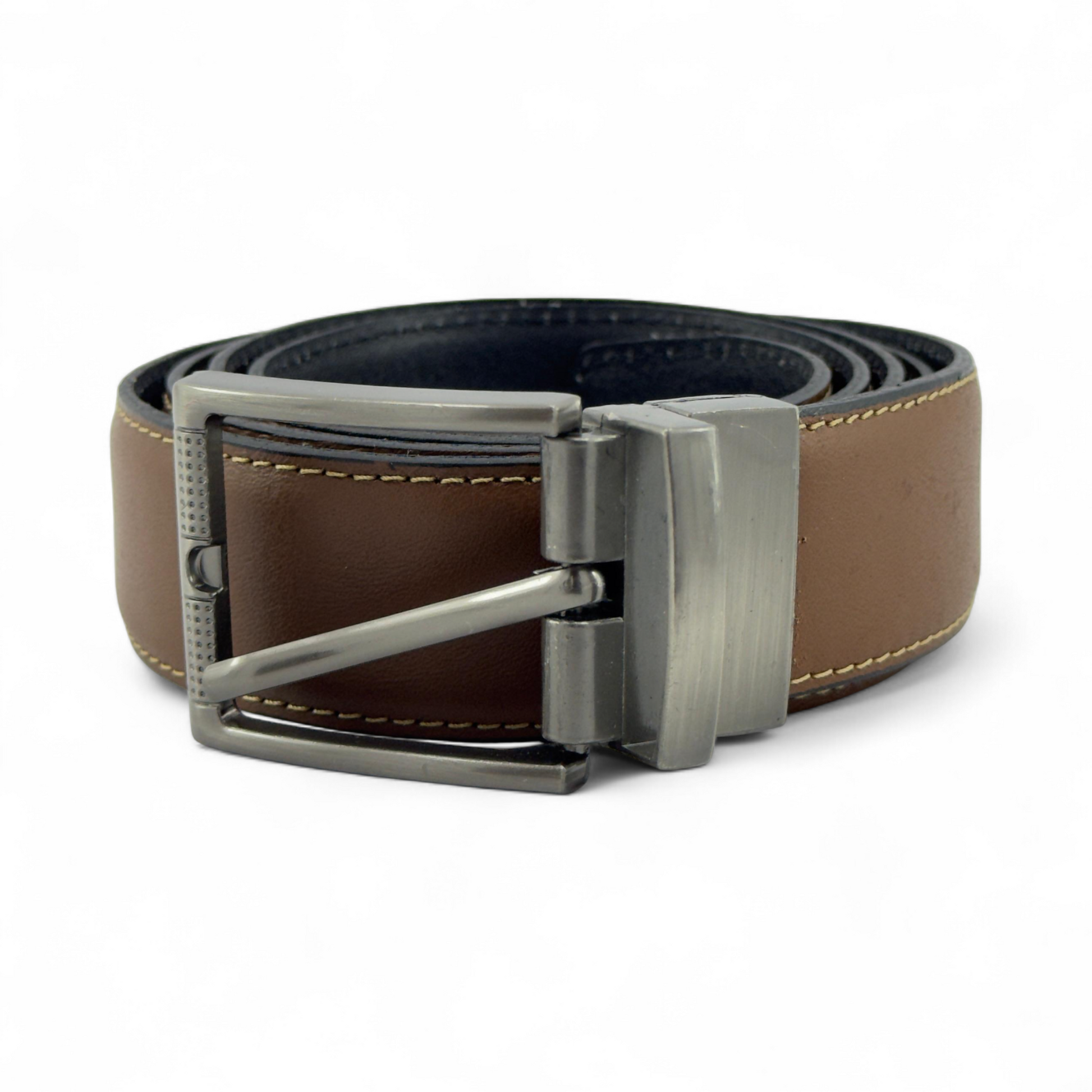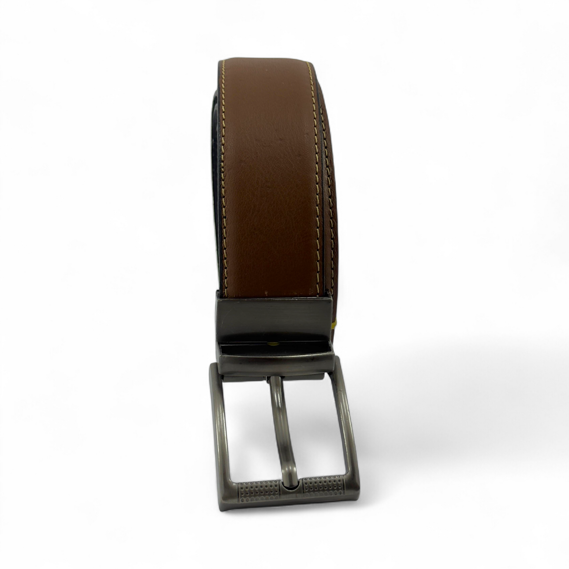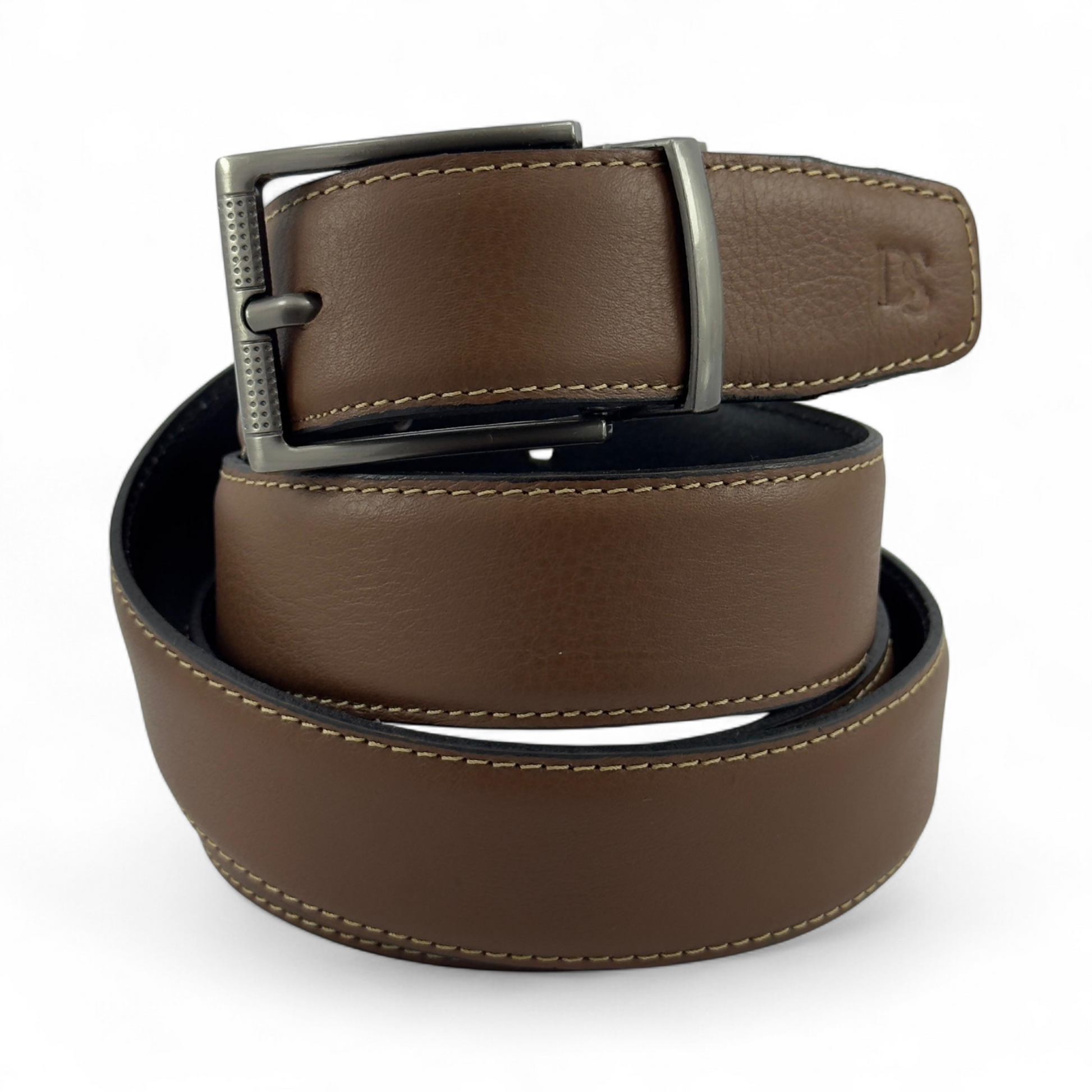 Un accesorio versátil que combina elegancia y practicidad. Con un diseño reversible, esta correa ofrece dos estilos en uno: un lado en café y el otro en negro, para que combines fácilmente con distintos looks y ocasiones.