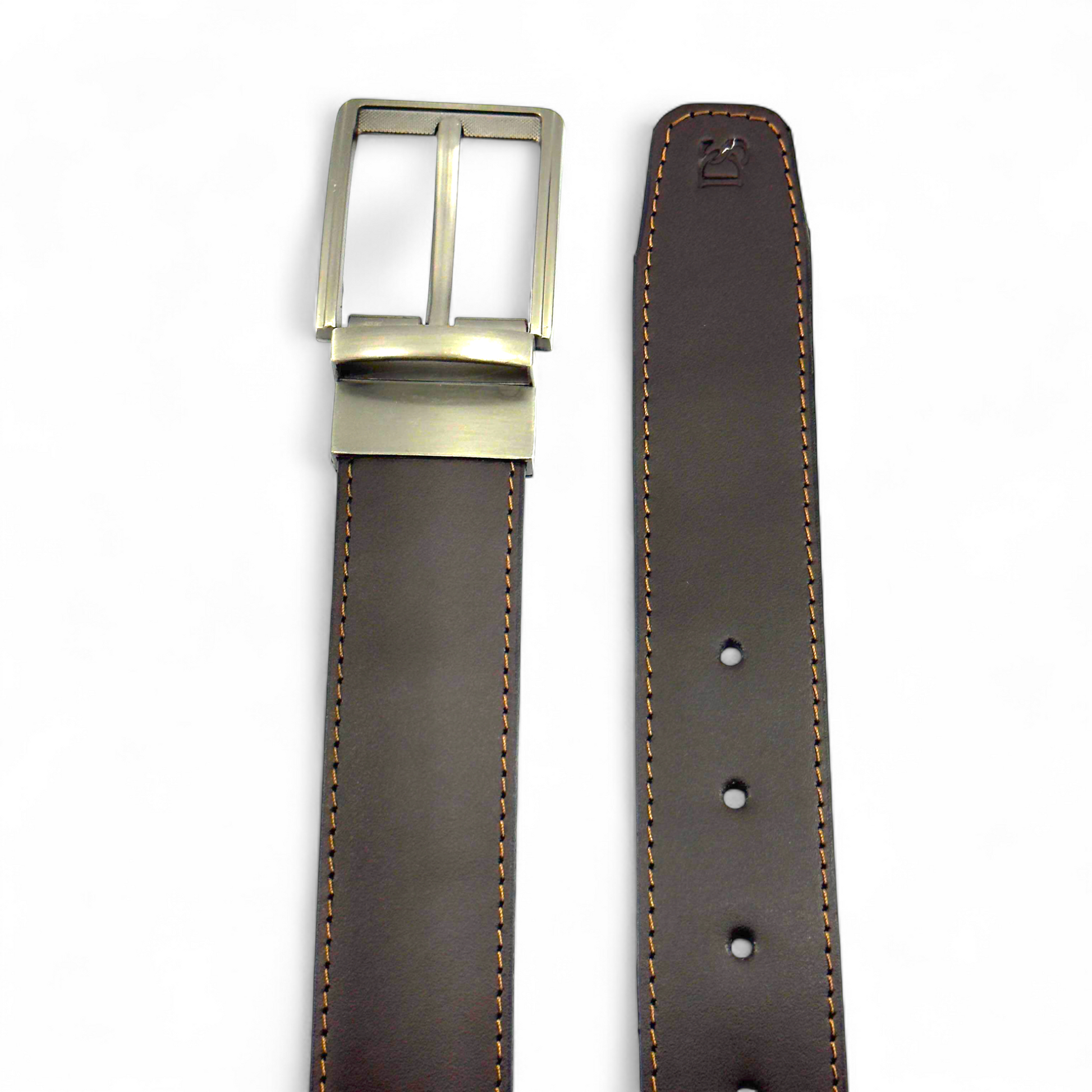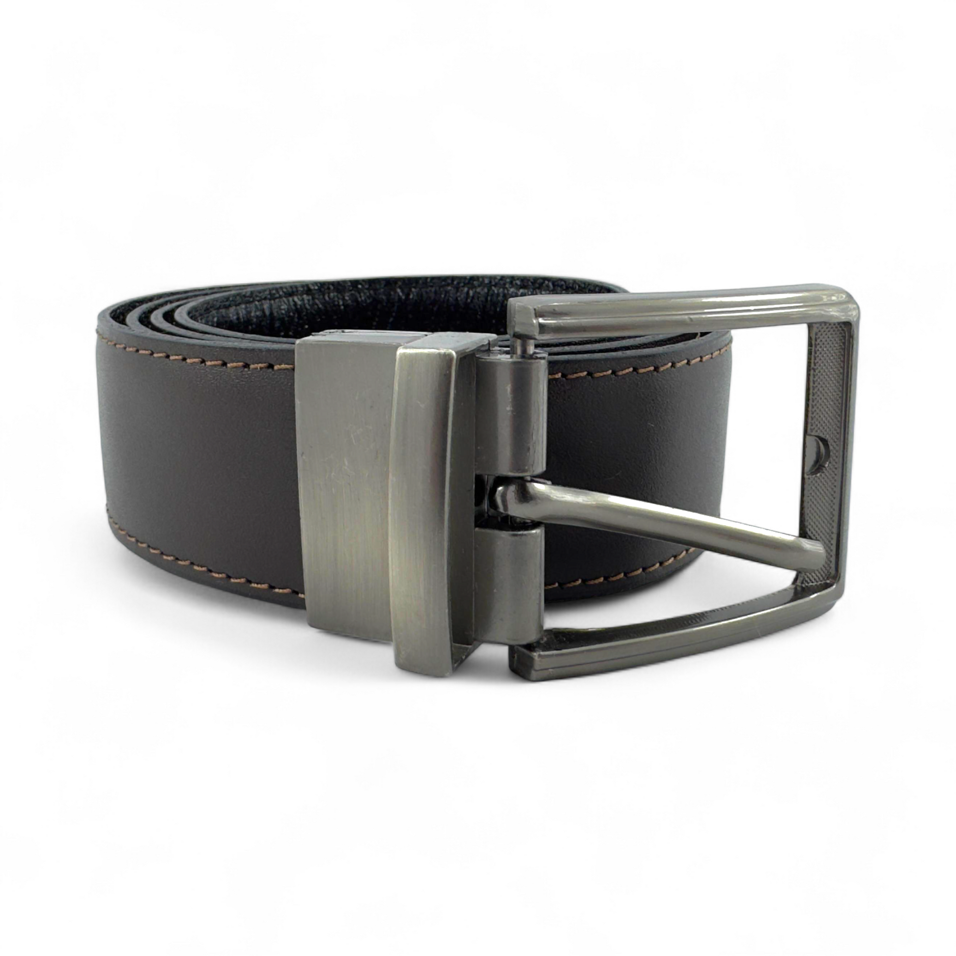 Un accesorio versátil que combina elegancia y practicidad. Con un diseño reversible, esta correa ofrece dos estilos en uno: un lado en café y el otro en negro, para que combines fácilmente con distintos looks y ocasiones.