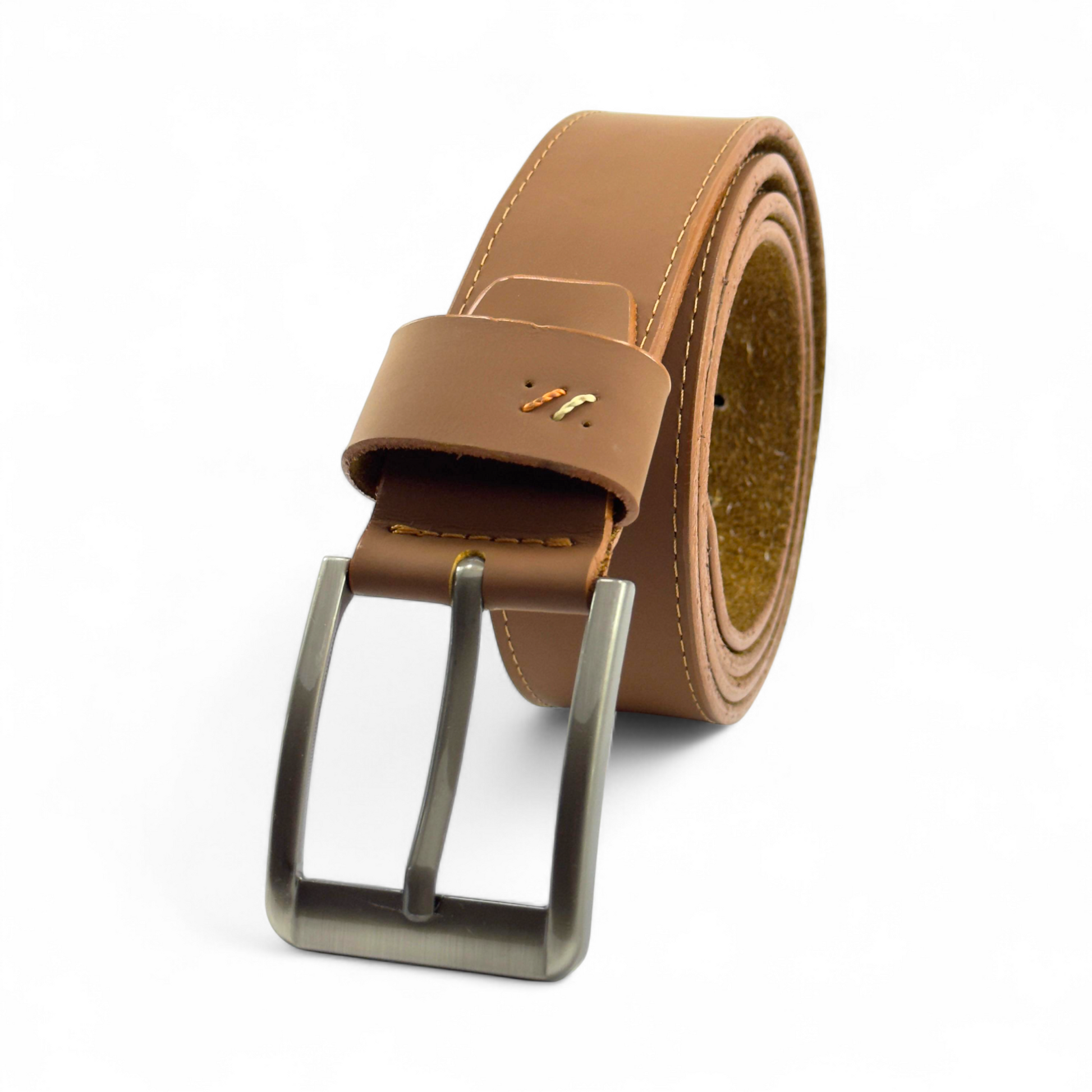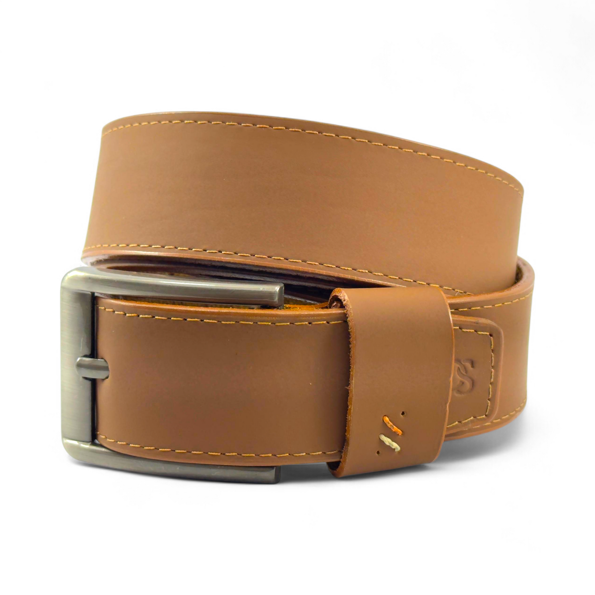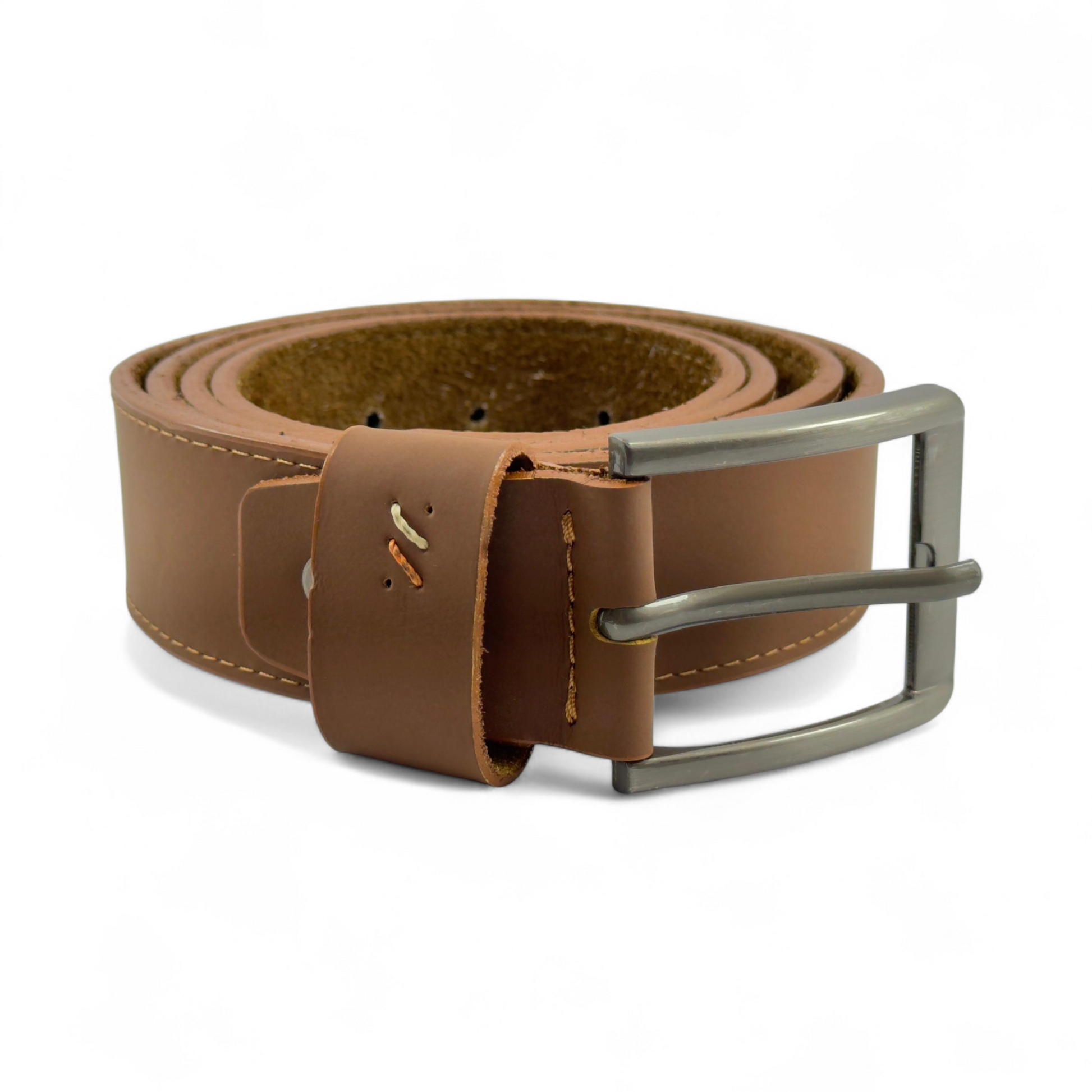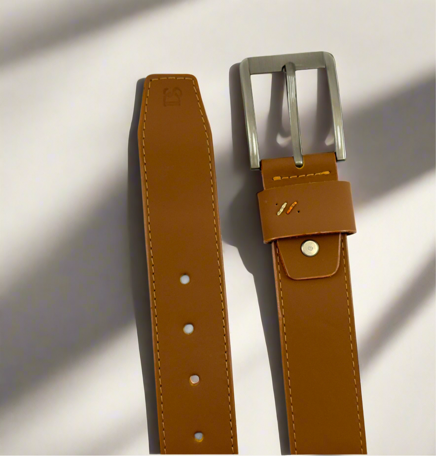 Un accesorio versátil que combina elegancia y comodidad. Fabricado en 100% cuero legítimo, destaca por su acabado liso y costuras visibles que le aportan carácter y resistencia. Su hebilla metálica en tono mate añade un toque moderno, ideal para complementar atuendos casuales o semiformales.
