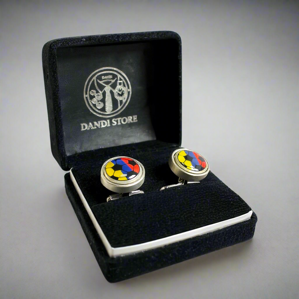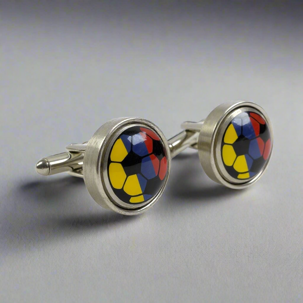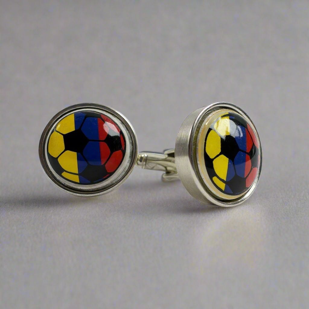 El detalle ideal para los apasionados del fútbol y orgullosos de llevar los colores de nuestra tierra. Estas mancornas en forma de balón con la bandera de Colombia son el equilibrio perfecto entre estilo y pasión.