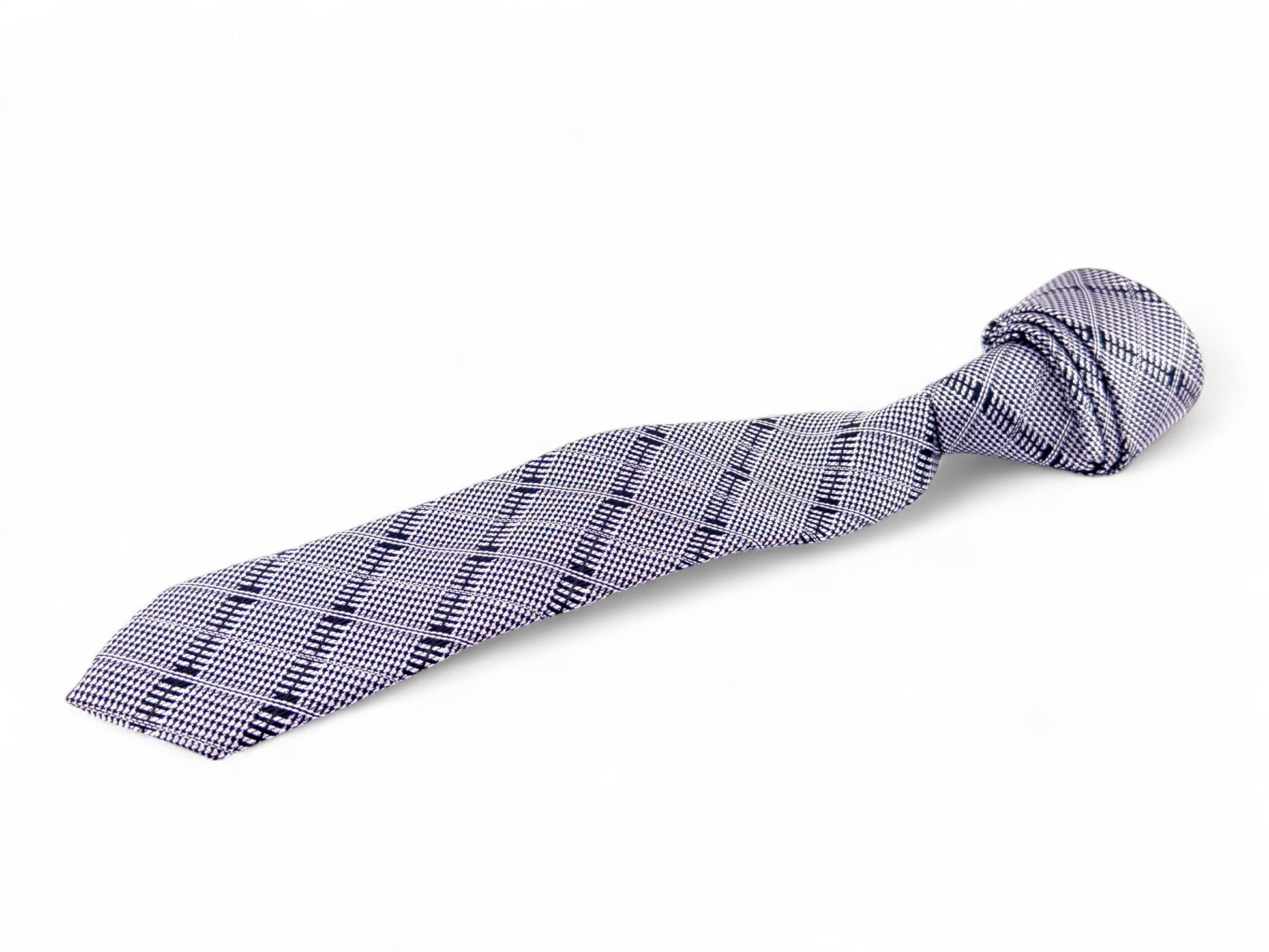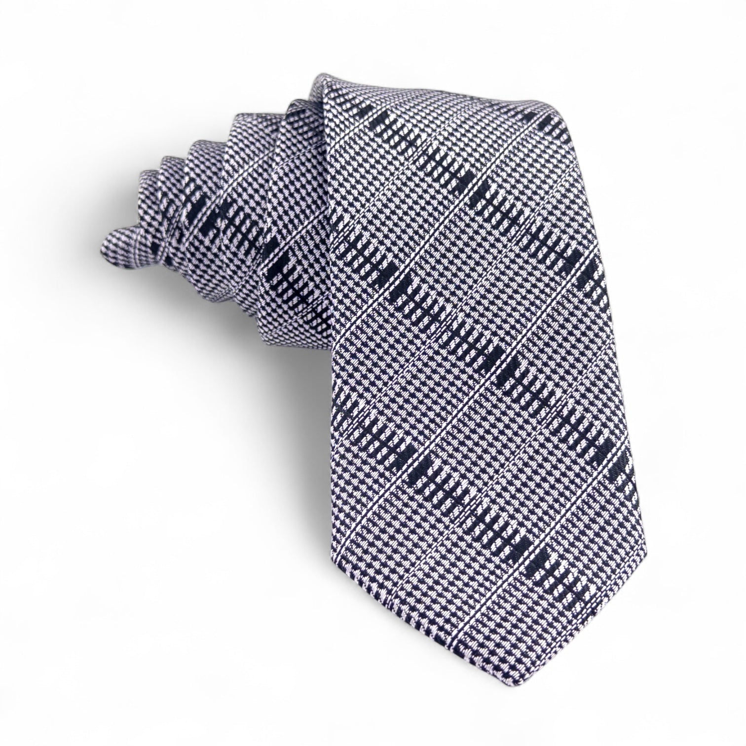 Corbata Gris con Tonos Blanco y Negro con Patrón Escocés – Estilo Moderno